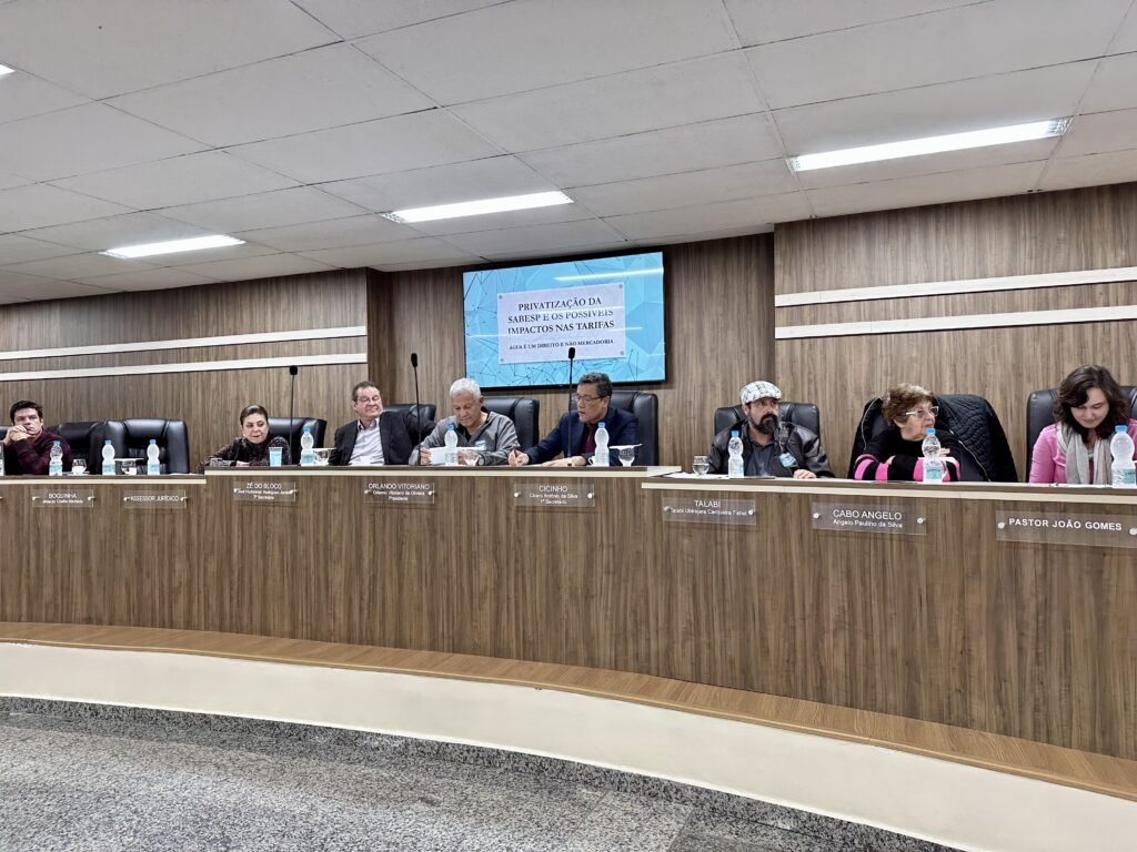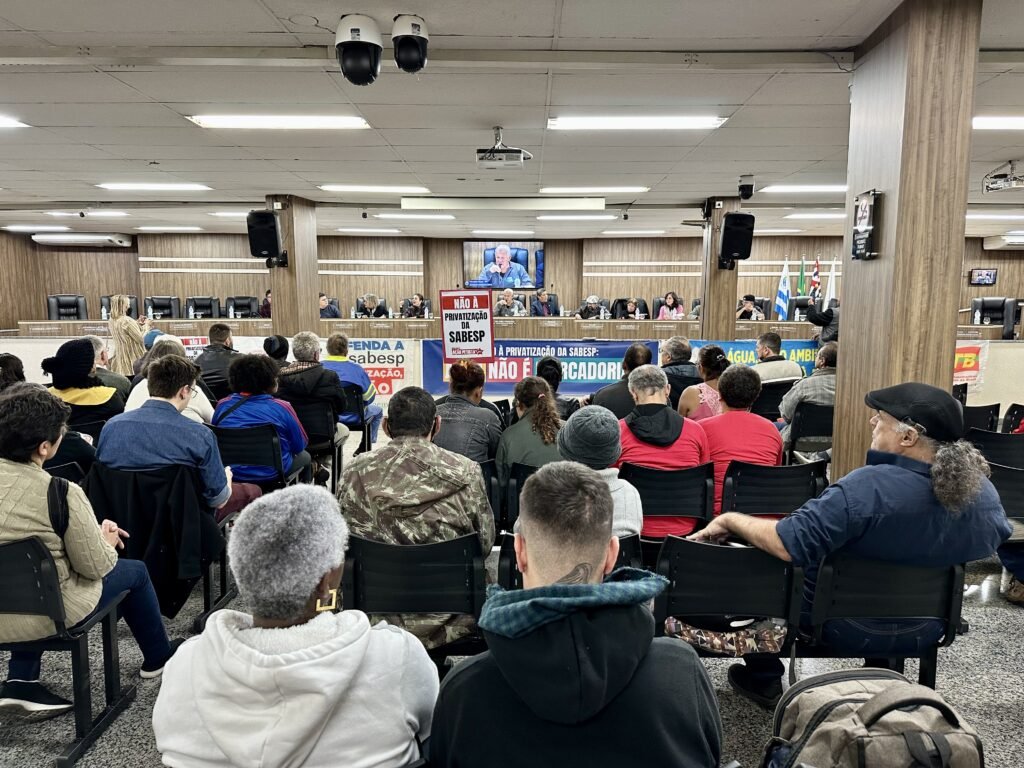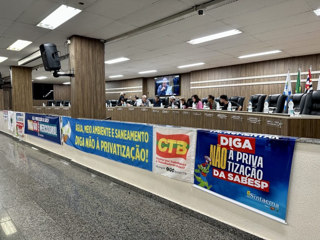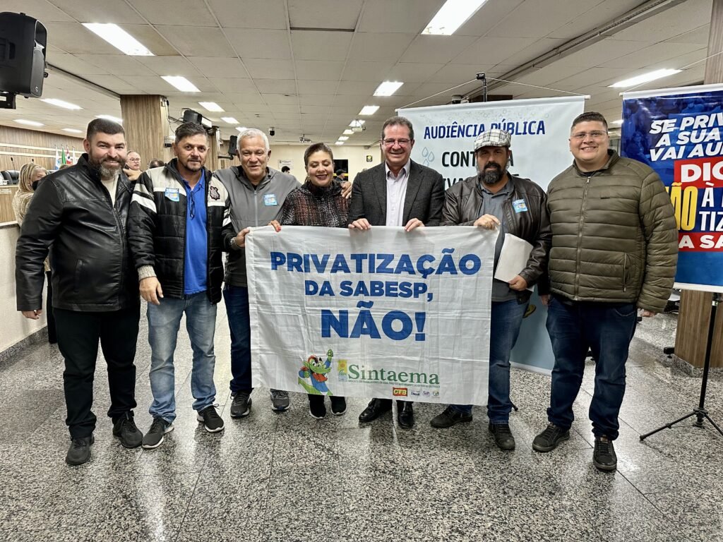“Além de ser um crime contra o patrimônio público, a privatização da Sabesp viola o direito à vida. Lutar contra o projeto privatista de Tarcísio de Freitas é tarefa de todos que sabem o que significa a água para a nossa sobrevivência”, afirmou o presidente do Sintaema, José Faggian, durante audiência pública na Câmara de Vereadores e Vereadoras de Diadema (SP).